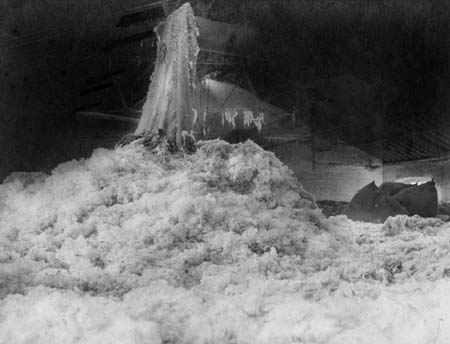 Wool being scattered inside a blending room (c1940s).