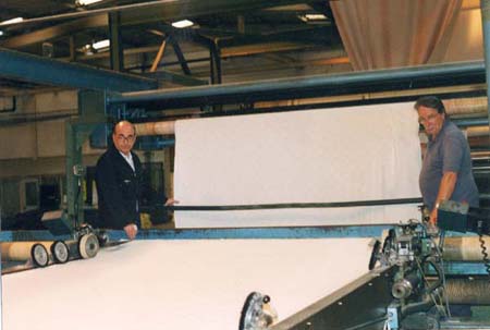 fed onto the pins and it is held taut while being dried. The